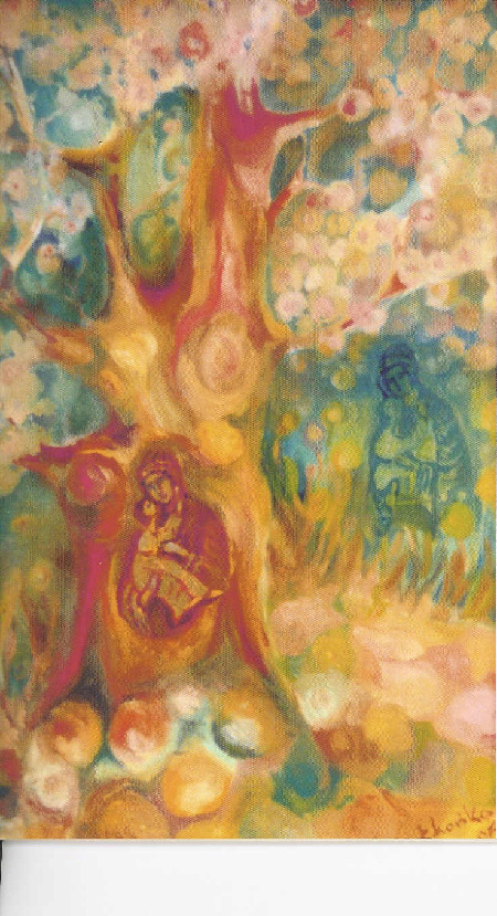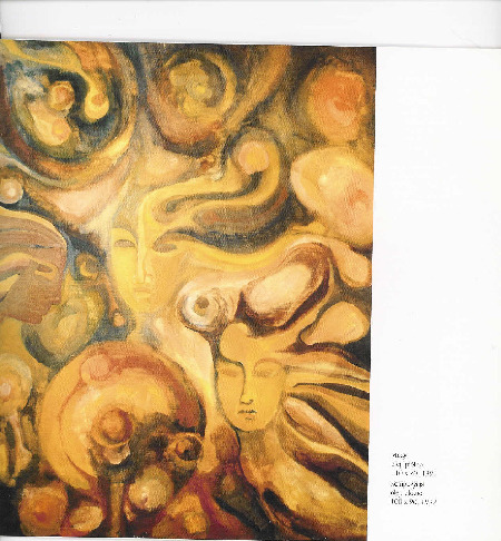 Madonna in der Landschaft (Öl, 1995) und unten: Zurück in die Vergangenheit,(Öl, 1998) sowie Frühling und Meer (Öl,1977)
